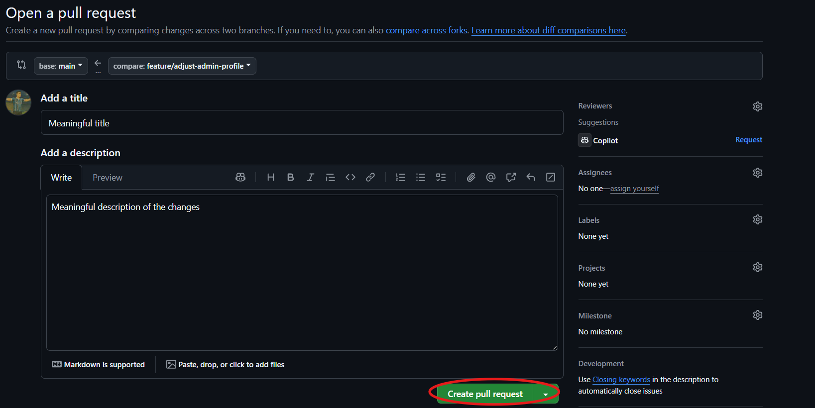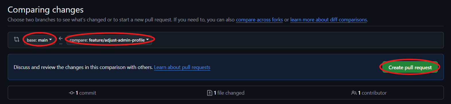 Select the base as the target environment/branch and compare as the branch you've made the changes. Click Create Pull Request