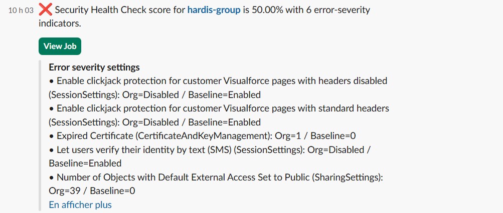 Sfdx-hardis command: sf hardis:org:monitor:health-check